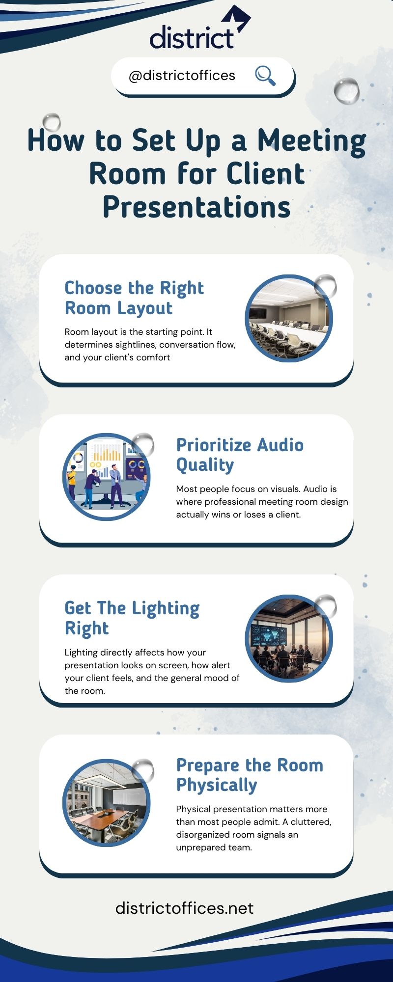 However, if managing all of these steps feels complex or time-consuming, the District Offices’ meeting room space offers a simpler, faster solution.
